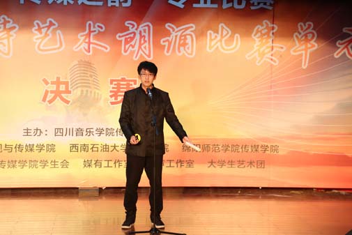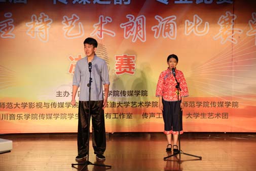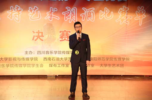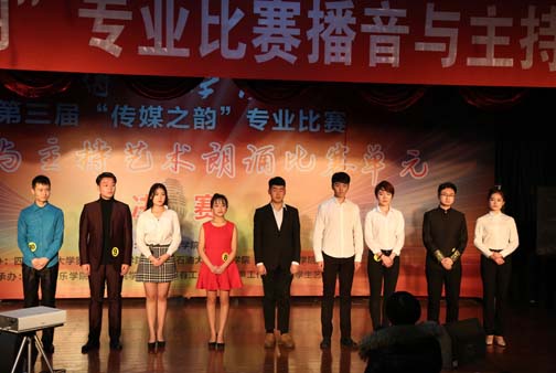 为助力提高我院播音与主持艺术专业学生专业综合能力,开拓专业眼界、收获有益经验,激发更高更广泛的专业学习热情,营造浓厚专业学习氛围。我院于2016年12月13日在新都校区4教104成功举办了第三届“传媒之韵”专业比赛播音与主持艺术朗诵比赛单元决赛,为喜爱朗诵的同学搭建了展示自我的平台。同时,本次比赛还在映客APP上进行同步了直播,将每一位参赛选手的风采充分准确的展示给更多热爱声音的人观摩、指正。