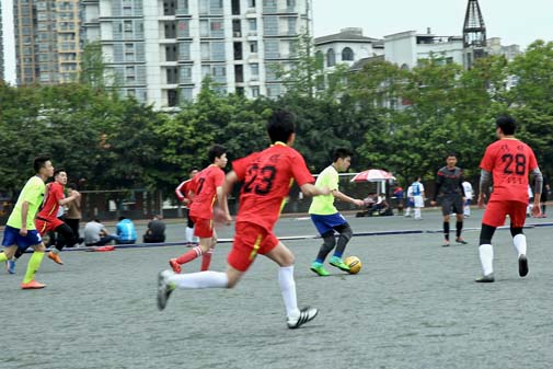 赛场上,无论是传媒学院球员们的凌厉攻势,还是声乐系球员们的细腻脚法与巧妙配合,都使得双方嘹亮的加油呐喊声一浪高过一浪,赛场气氛愈加激烈。双方前锋进攻犀利、势在必得双方后卫更是寸丈不让,坚强防守。比赛逐渐进入白热化阶段。声乐系的队员们脚下配合默契,努力通过快速的防守反击,伺机寻找破门机会,但无奈我院稳健的守门员坐镇球门,使得他们难以攻破我院的密集防守。最终,我院队员们凭借着猛烈的进攻和精湛的脚法以及严密稳健的防守,以4:0的比分,赢得此次比赛的胜利。