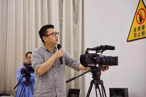 本次培训会分为三个阶段进行。首先,由索尼(中国)有限公司的技术人员向师生们简单介绍了本次带来的机器设备,让大家对摄像机的名称、型号有一个基本的了解。其中,王智昊老师以索尼PYW FS7为例,详细的介绍了它的构造、使用方法以及拍摄时所需要的技术技巧。随后,老师通过呈现图文相结合的PPT形式为我们精彩的讲解了“如何拍出符合标准的视频、电影或者电视剧”等专业知识问题。在场同学都聚精会神、目不转睛,认真的听着老师的讲解,学习热情高涨。最后,由同学们自己上台进行实践操作,大家就自己对摄像机的疑惑向技术人员提出问题,技术人员更是非常热心的解答大家提出的问题和存在的疑惑,耐心讲述正确使用摄像机的方法和技术。现场互动不断,掌声雷动。