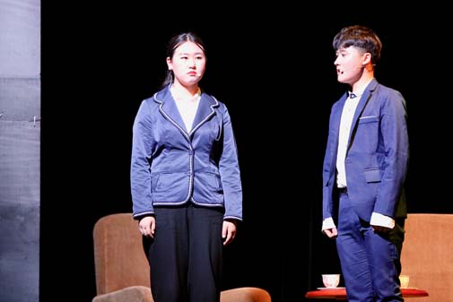 演出结尾处,包院长、后书记、王副院长、袁乐老师分别对话剧的表现和同学们的精神进行了点评和鼓励,表达了对于师生们努力付出并终获喜人效果的高度赞扬和肯定,他们鼓励同学们要在有限的大学时光里规划好自己的生活、学习和情感,要生活多彩、学业圆满、情感真挚的度过和享受大学的美好时光,不给自己留下遗憾、不让自己虚度光阴。
