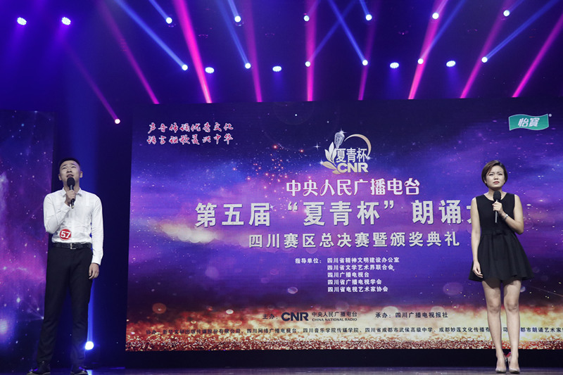 8月底,中央人民广播电台第五届“夏青杯”朗诵大赛复赛结果揭晓,从全国77个分赛区选送的2468件作品中有238件作品脱颖而出,成功晋级决赛,其中成人组作品98件、青少组作品120件、配音组作品20件。其中,川音传媒学院2015级播音主持艺术专业学生(汉语播音方向)腾戈和2015级播音主持艺术专业学生(双语播音方向)戈素敏成功晋级第五届“夏青杯”全国朗诵大赛决赛。   “夏青杯”全国朗诵大赛是由中央人民广播电台主办的全国性朗诵赛事,自2017年初正式启动以来,得到了社会各界的广泛关注与参与,共有广播电视媒体、高校、朗诵艺术协会、网络公司等77家机构承办分赛区的赛事,超过95万人参加了各分赛区的比赛。这些晋级的选手们将在接下来会师北京,进行巅峰对决,届时,晋级决赛的选手将在现场一决高下,充分展示中华民族语言艺术的魅力。大赛的一、二、三等奖及最高人气奖、最佳舞台表现奖、最具潜力新人奖、伯乐奖、特别贡献奖、最佳组织奖等各个单项奖也将现场揭晓。 希望传媒学院成功晋级的两位同学可以展现自己最精彩的一面,不负众望,在决赛中取得理想成绩。