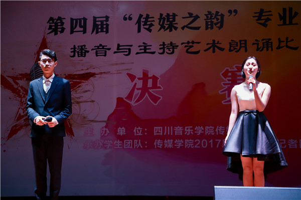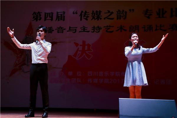 2017年12月22日下午两点,我院在新都校区小音乐厅成功举办了第四届“传媒之韵”专业比赛播音与主持艺术朗诵比赛单元决赛,我院学子踊跃到场观看。同时,本次比赛还在斗鱼APP上同步进行了直播,将每一位参赛选手的风采充分准确的展示给更多热爱声音艺术的人们观摩、指正。 担任本次决赛评委的有国家一级播音员、德阳市著名主持人、伟德bv国际体育传媒学院专业教师王久灵老师,伟德bv国际体育传媒学院播音主持教研室负责人、专业教师王雪玉洁老师,前北京电视台新闻主播、北京大学广播电视方向硕士、伟德bv国际体育传媒学院专业教师胡筱老师,四川广播电台新闻频率主持人、《四川新闻联播》新闻主播,四川广播电台新闻频率主持人、《天府早新闻》《早间新闻榜》等栏目主播、伟德bv国际体育传媒学院广播播音与主持专业教师张琪老师。 比赛现场上,十三组参赛选手以铿锵有力的气势,充沛饱满的情感,自信大方的形象赢得老师和同学们阵阵掌声。比赛内容精彩纷呈,参赛者将朗诵作品配以音乐、画面以朗诵、表演等形式或款款深情、或激情高昂地把诗词的内容全方位展示出来,让观众们真切地领略到诗歌之意境,体会到朗诵经典之韵味,从中无不受到美的熏陶。伴随琅琅诵读声,观众们的掌声也是此起彼伏,不绝于耳。本次比赛的成功举办,为同学们提供了一个展示自我的平台,同时也展示了我院学子的青春活力与梦想。呈现出“以赛鉴学、以赛竞学、以赛促学、以赛强学”的办赛初衷和良好效果。 最后,评委老师对选手们的专业表现进行细致的点评,让同学们知道以后如何改进、提高。通过学院的大力推动和我院学生的努力,“传媒之韵”已经成为我院一年一度的代表性比赛。“传媒之韵”使同学们同台竞技、互学互鉴,以更加开放的专业视野,更加包容的专业理念,更加全面的专业素养去助力专业的成长。愿“传媒之韵”越办越大、越办越好,促进我院师生共同进步、共同成长。