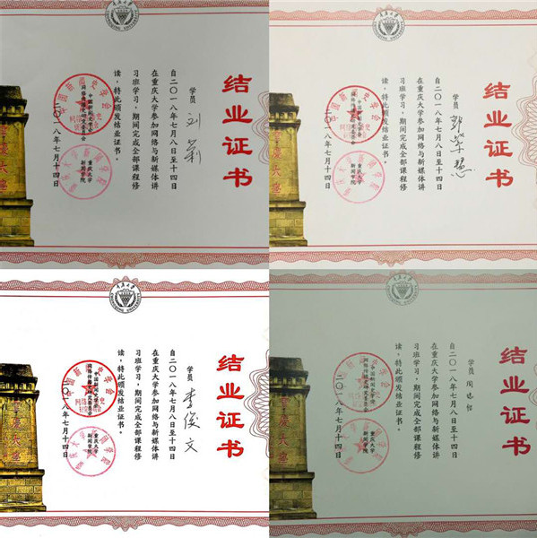 2018年7月9日-14日重庆大学网络与新媒体讲习班(第四期)在重庆大学民主湖报告厅举行,我院教研室主任刘莉副教授,专业老师郭子慧、李俊文以及2016级研究生周琼怡参与此次讲习班。