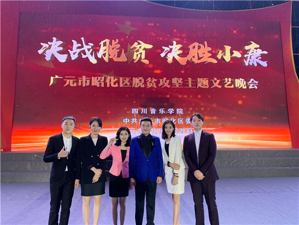 2018年10月17日晚,广元市昭化区举行“决战脱贫 决胜小康”脱贫攻坚主题文艺晚会。我院播音与主持专业教师李超老师带领播音与主持艺术专业学生徐铭阳、腾戈、卜义桓、王斯婧、付佳钰参与演出。 本场晚会由李超老师担任主持,晚会在大合唱《脱贫攻坚之歌》中正式拉开帷幕。我院学生表演的朗诵《昭化脱贫赞歌》,音诗画同步展开,向观众娓娓道来脱贫攻坚的政策、故事和影响 。学生们精彩的演出赢得了观众的阵阵喝彩, 掌声不断。这次的演出活动,传媒学院用自己的声音宣传了党的脱贫攻坚政策,让广大干部群众在潜移默化中受到思想教育,也让我们的学生从中受到了鼓舞,激发了动力。 此外,伟德bv国际体育传媒学院于2018年6月25日下午与四川省广元市昭化区广播电视台在伟德bv国际体育成功签订校地合作协议。近期,我院播音与主持艺术专业2015级学生徐铭阳、腾戈作为首批学生代表已前往昭化区广播电视台进行实习。今后,我院与广元市昭化区广播电视台还将开展更加紧密的合作。