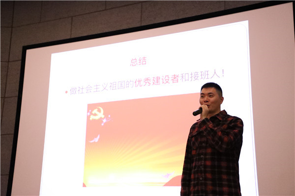 12月17日下午17:00传媒学院副院长王利剑副教授在第四教学楼102教室对党总支学生支部党员及入党积极分子进行了主题为“学精神.悟发展”的主题党课,对《习近平在全国教育大会上的讲话》进行深入宣讲,传媒学院学生支部书记张旭同志一并在席学习、记录。