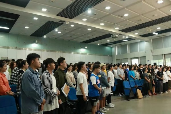 2019年9月6日,我院在新都校区学术报告厅召开了传媒学院2019级新生入学教育大会暨开学第一课。传媒学院党总支副书记后方同志,副院长王利剑副教授,学生支部书记、2019级辅导员张旭老师,2018、2016级辅导员敬雯老师,广播电视编导教研室主任刘莉博士,传媒学院教学秘书肖景雯老师、李乾坤老师出席本次活动。 首先,全体师生肃穆而立,面向国旗齐唱国歌,展现了传媒学院全体师生昂扬向上、拼搏进取的精神风貌。随后,王利剑副院长作了关于新生的主题讲话,他号召同学们立足今天,着眼明天,自我规划,自我管理,在春天里播种信心,在秋天里收获希望。王副院长的讲话极大地鼓舞了师生的信心。    接下来 ,后方书记从“学生”的意义出发,寄语学生志存高远,逐梦前行,向大家强调了“学生”必须遵守的校规校纪,鼓励学生勇于承担起自己的责任。并且希望同学们做一个会学习的人,要有意识地培养自己主动学习的态度和能力、提倡刻苦钻研、努力拼搏的学习精神,让自己成为一个优秀的传媒人。后方书记的讲话赢得了在场师生的阵阵掌声。