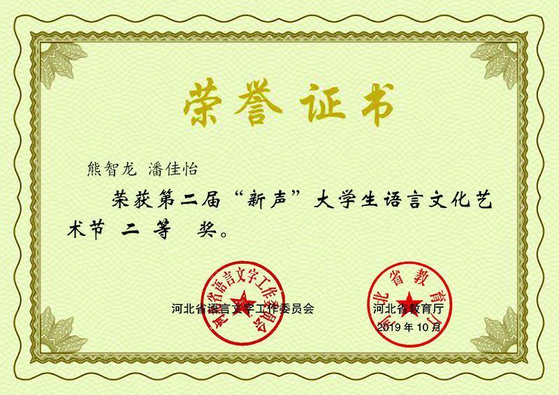 2019年9月20日——21日,在由河北省语言文字工作委员会和河北省教育厅主办,河北大学承办的第二届“新声”大学生语言文化艺术节原创作品朗诵大赛中,川音传媒学院2018级播音主持艺术专业(出镜记者班)学生潘佳怡、熊智龙所创作并朗诵的作品《无畏逆行者—祭凉山英雄》在全国55所高校报送的270多部作品中经过初赛、复赛、总决赛的层层选拔,不负众望,脱颖而出,最终获得全国第六名(二等奖)的优异成绩,播音与主持专业教师李超荣获伯乐奖,伟德bv国际体育传媒学院荣获优秀组织单位!