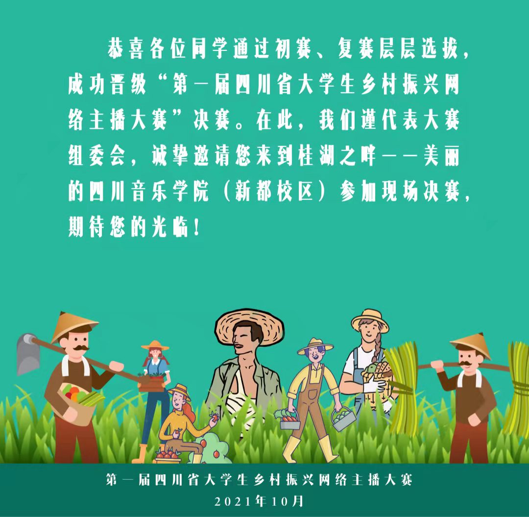 自媒体时代的到来标志着一个新时代、新行业的崛起。四川省大学生乡村振兴网络主播大赛的举办旨在深入贯彻实施党的十九大提出的“乡村振兴战略”,深化我省高等教育教学改革,推动我省高校播音与主持艺术专业的发展。通过乡村振兴网络主播大赛,引导大学生更好地了解乡村、热爱乡村、建设乡村,用乡村梦实现青春梦,助力乡村振兴。本次大赛采用了初赛,复赛,决赛的方式进行,旨在发掘高校中的优秀人才,展现当代大学生们的才华,创造更多的就业、创业机会,为乡村振兴添砖加瓦。
