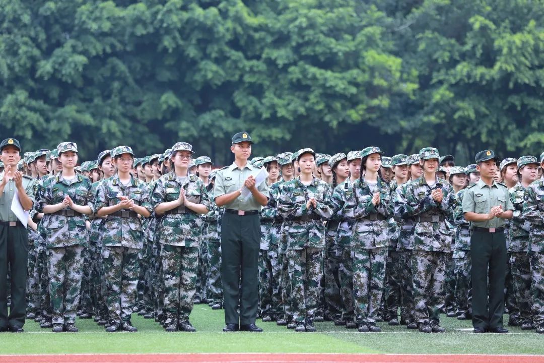 发言结束后,牟文虎副院长授军训团团旗,全场奏响《中国人民解放军军歌》,开训典礼到此结束。自此,为期14天的军训正式拉开序幕。在这里,我们希望传媒学院所有新生能够在此次军训中坚毅守纪,蓬勃朝气,以昂扬的斗志迎接每一天的挑战!也相信他们一定能展示出传媒学子的精神面貌与学识风采!