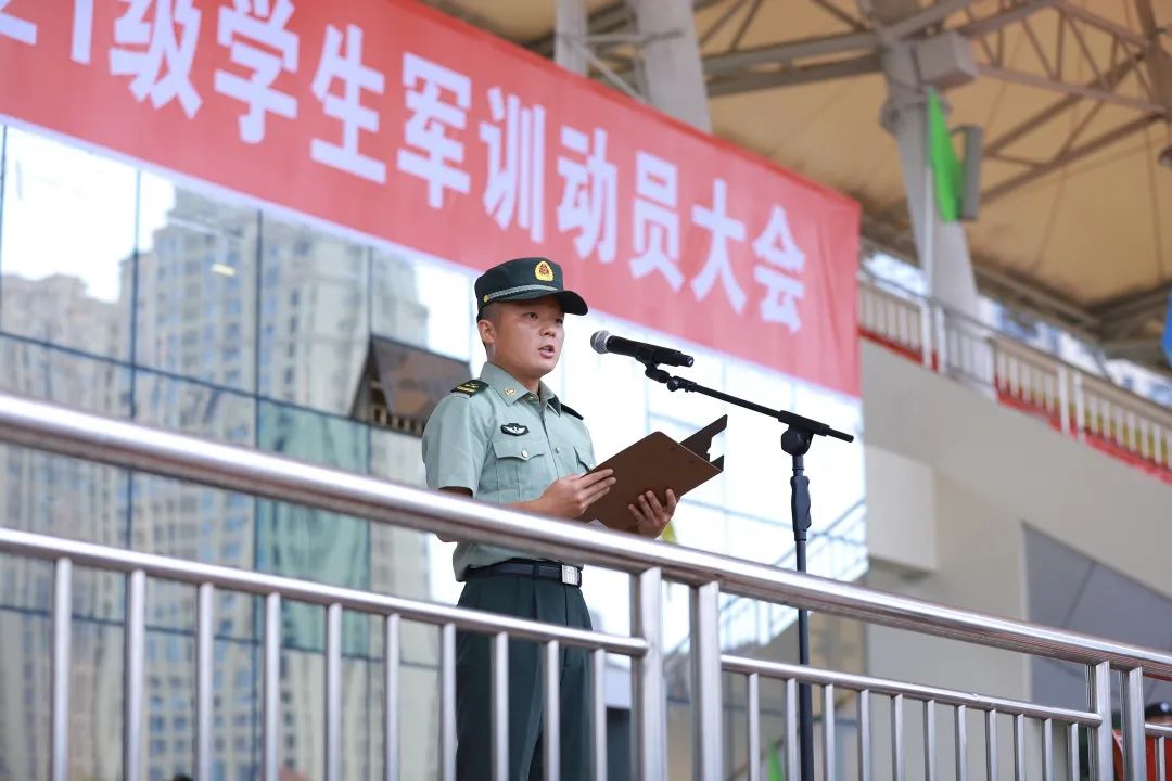 紧接着是教官代表发言,他代表全体教官向新同学们强调此次军训的要求。希望新生们通过此次军训:磨炼意志,培养吃苦耐劳精神;锻炼体魄,展现新时代大学生的崭新面貌。并希望同学们能够继承和发扬我军的优良传统。最后,预祝本次军训能够顺利进行且圆满结束!