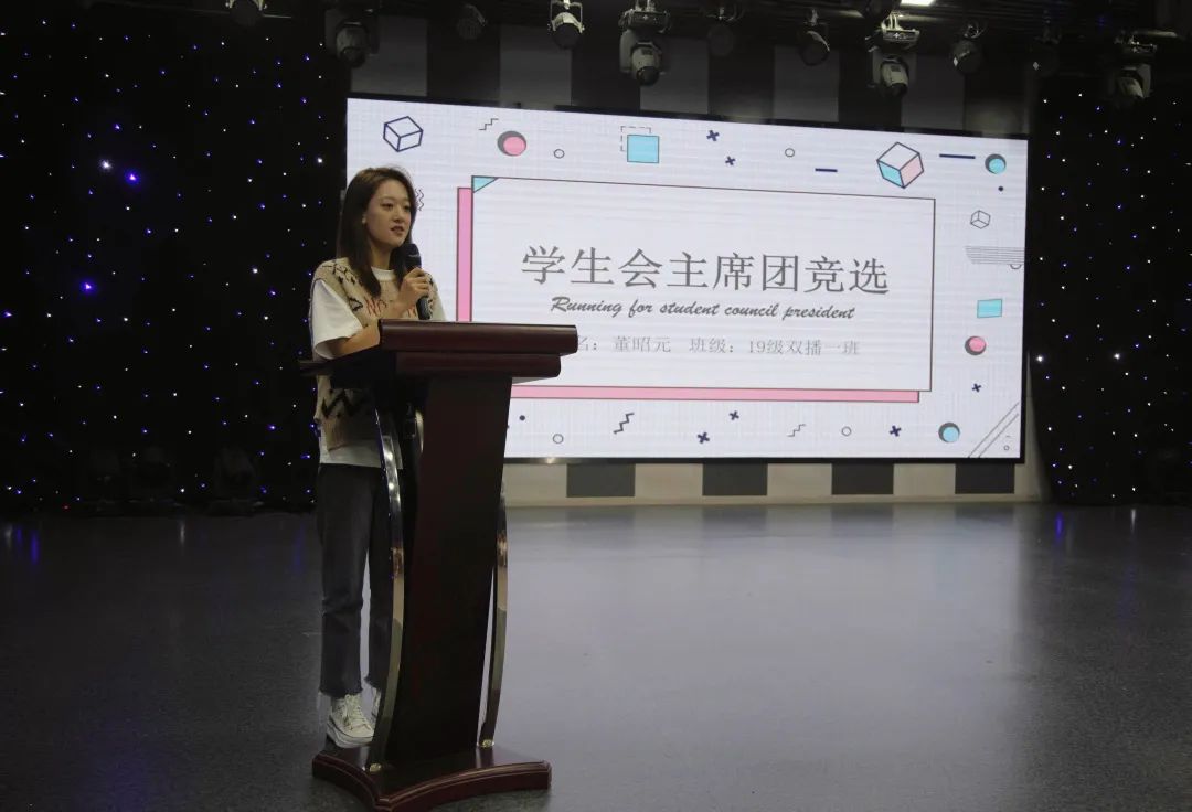 随后开始进行新一届主席团竞选,共有6名候选人分别是:向王君、董昭元、许佳琪、龚海逸、董亦涵、钟智勇,他们依次通过自己的演讲,阐述了自己在学生会中的收获、成果与工作经验和对当选后的展望以及对未来工作的想法与规划。伴随着精彩的演讲,风趣的语言,每一位竞选的同学都赢得了场下老师与同学们的阵阵掌声和高度认可。