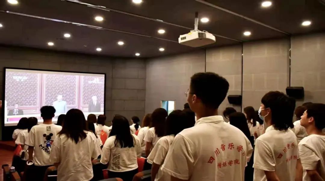 2021年7月1日,是中国共产党百年华诞,这是一个伟大且难忘的时刻,上午8时,庆祝中国共产党成立100周年大会在北京天安门广场隆重举行。同一时间,伟德bv国际体育传媒学院在党总支副书记刘莉的带领下,在4教102演播厅集体观看了庆典直播,参与观看直播的还有传媒学院全体教职工和40余位学生党员及入党积极分子代表,每位参与者都佩戴党徽,手执国旗和党旗。2021年7月1日,是中国共产党百年华诞,这是一个伟大且难忘的时刻,上午8时,庆祝中国共产党成立100周年大会在北京天安门广场隆重举行。同一时间,伟德bv国际体育传媒学院在党总支副书记刘莉的带领下,在4教102演播厅集体观看了庆典直播,参与观看直播的还有传媒学院全体教职工和40余位学生党员及入党积极分子代表,每位参与者都佩戴党徽,手执国旗和党旗。