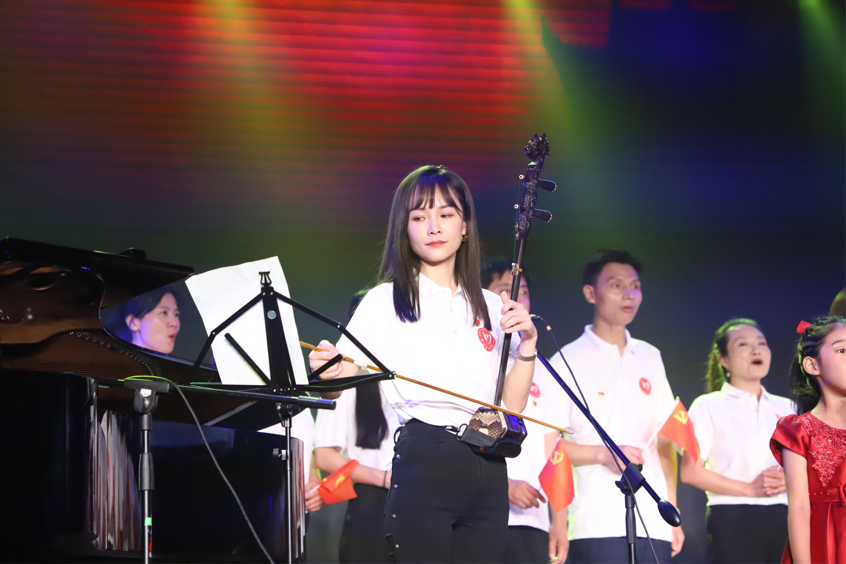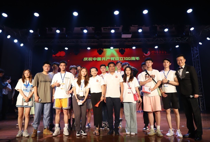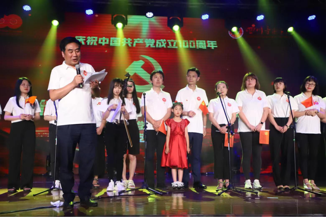 六月二十二日晚,为庆祝建党一百周年,伟德bv国际体育传媒学院举办了主题为“传奋进之声,颂百年辉煌”的文艺展演活动。伟德bv国际体育党委常委、副院长牟文虎,传媒学院党总支书记、院长包德述,党总支副书记刘莉以及各位专业老师皆莅临现场,观看展演。1921年,一个伟大的政党诞生了——中国共产党。2021年,是党的100岁生日。为庆祝中国共产党百年华诞,凝聚起开启全面建设社会主义现代化国家新征程、向第二个百年奋斗目标进军的磅礴力量,唱响永远跟党走、担当新使命、阔步新征程的昂扬旋律,我院师生都早早地开始了相关准备工作,不仅节目种类繁多,歌曲,舞蹈,戏曲,朗诵,应有尽有,编排也紧扣建党一百年的红色主题,更是凸显传媒特色,安排了线上直播的渠道,向观众展现传媒学院师生的精神风貌。在舞蹈《东方红》激昂的乐曲中拉开了整个晚会的序幕,乐曲舞出了伟大的革命领袖开天辟地,引领国人踏上革命征程的开创精神。原创朗诵《永不消逝的声音》讲述了延安新华广播电台的建立,带领观众共同感受中国人民广播事业的81年光辉历程;由非遗文化传人葛鸿儒带来的《国潮蜀越——孔雀东南飞》以精妙绝伦的变脸博得了阵阵惊呼和掌声;舞蹈《灯火里的中国》令人沉醉…今天晚会最大的亮点是师生同台,许多节目都是由老师和同学共同参与:合唱《我为共产主义把青春奉献》便是由传媒学院党总支书记、院长包德述做钢琴伴奏,党总支副书记刘莉领唱,分团委书记董航老师指挥,三位老师和学生们共同完成的;朗诵《不朽》也是由五位播音专业的老师展现,讴歌了中华儿女不屈不挠,保卫祖国的精神,以革命英雄不朽的精神,鞭策着一辈辈中华儿女砥砺前行。精彩的表演让台下观众的赞叹声不绝于耳,纷纷挥起手中的红旗,沉浸其中。最后,演出在全体演员和观众齐声合唱《没有共产党就没有新中国》中落下帷幕。不忘初心,牢记使命。今天我们从壮阔的党史中汲取营养,在激昂的歌声中回望历史,共感百年风雨兼程,百年辉煌伟业。此次文艺展演,歌颂了中国共产党的伟大精神,也加深了我们对艰苦革命的印象。愿我们都能在党的带领下,继续开拓奋进,坚持一心,为中国的建设,中国梦的实现贡献自己的力量!