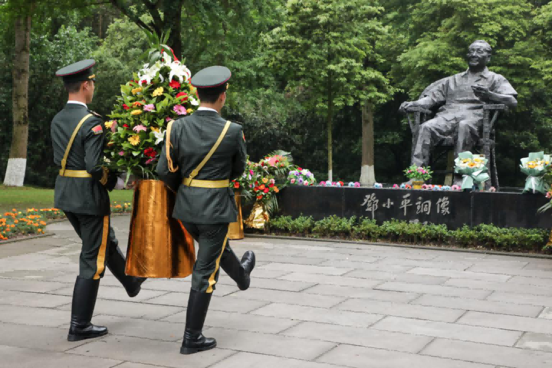 在邓小平铜像广场,全体师生向邓小平铜像敬献花篮,并致以三鞠躬,表达对伟人的无比崇敬与深切缅怀之情。面对鲜艳的中国共产党党旗,包德述书记带领全体师生重温入党誓词,表达坚定决心。仿佛听到邓小平同志曾经饱含深情的话语“我是中国人民的儿子,我深情地爱着我的祖国和人民”,与我们的誓言一起回荡在耳畔。