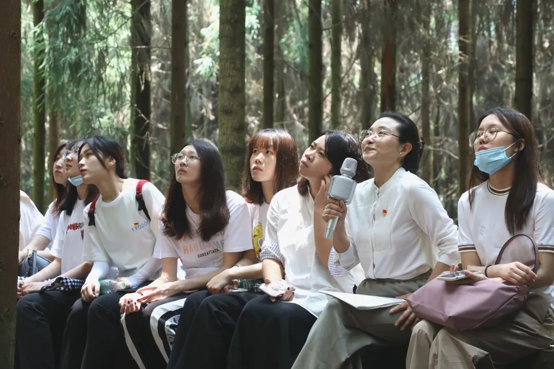 参观结束后,全体党员师生就地围坐在一起,在郁郁葱葱的树林间,刘莉书记给同学们上了一堂特别的党课。她讲了作为红军长征经历时间最长、重要战役战斗最多的省份,四川大地上铭刻了红军走过的诸多足迹。红军长征邛崃纪念馆位于邛崃市高何镇高兴村,是成都市区域内唯一的长征纪念地。1935年中国工农红军第四方面军长征途经邛崃时,曾打响天台山等十余个战役,建立起苏维埃政权。同学纷纷表示历史不应该被忘记,我们生活在和平美好的年代,更不应该忘记先辈们为此付出的努力。我们应将先辈们的革命精神和奉献精神铭记于心,不忘初心,坚定理想信念,继承革命传统,为实现中华民族伟大复兴的中国梦努力奋斗!随后学生代表朗诵了发扬长征精神、歌颂共产党的作品。