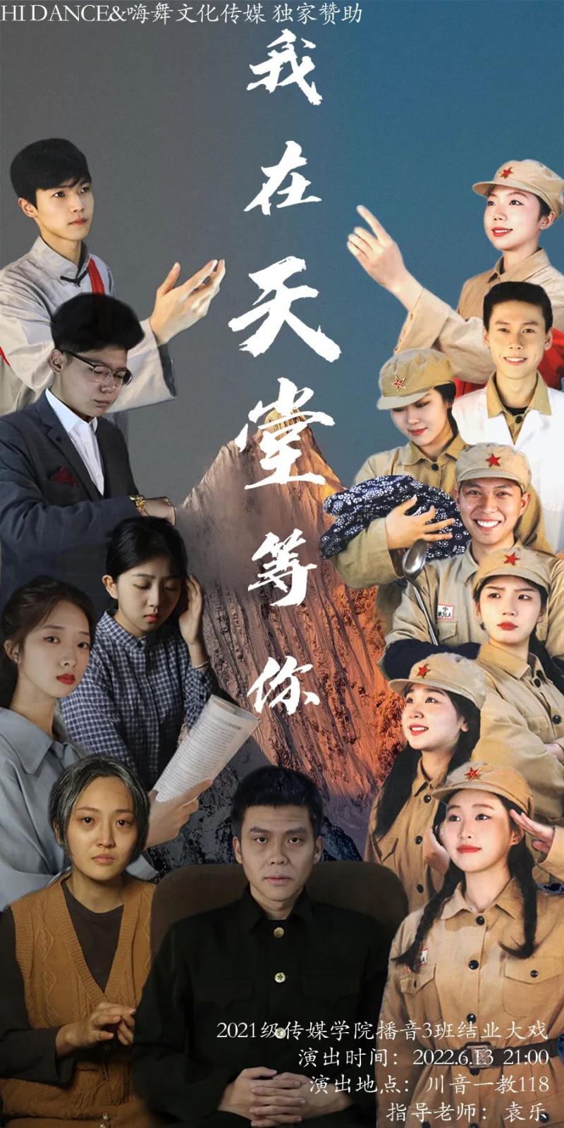 还记得我们可以在开会时因为剧本的瑕疵、意见大吵一架,最后相互妥协。我们有一颗上进的心,每个人都是自己心中的第一名,每个人都是主角。每个人都在为了未来而努力,我们希望能够破茧成蝶,希望能够站在舞台上完成我们的这次演出。我们2021级播音班诚邀各位莅临现场,谢谢大家!