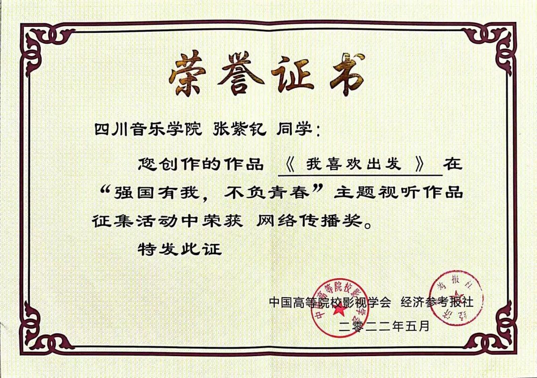 近期,由中国高等院校影视学会网络视听专业委员会与经济参考报社联合主办的“强国有我、不负青春”主题视听作品征集活动获奖名单揭晓,传媒学院2021级播音与主持艺术专业学生张紫钇创作的诵读作品《我喜欢出发》荣获本次征集活动网络传播奖,伟德bv国际体育传媒学院荣获“优秀组织奖”。