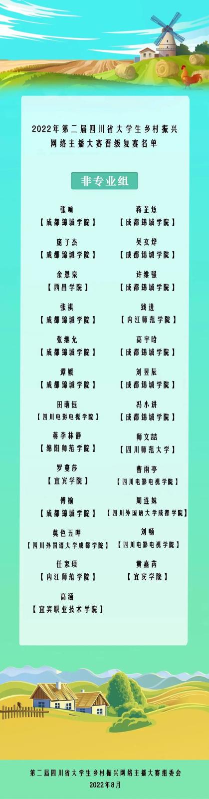 2022年第二届四川省大学生乡村振兴网络主播大赛非专业组晋级复赛名单