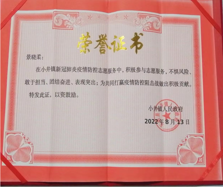 工作收获:七月底菏泽市出现新一轮疫情,形势严峻刻不容缓,作为青年大学生,同时也积极响应政府号召,我作为志愿者筛查中高风险地区返乡人员,守在入乡必经地,查验健康码和场所码,直到疫情得以完全控制,共为期一个月。在此次志愿活动中,尽管工作辛苦,天气炎热,我们不敢有丝毫的懈怠,同时我们作为志愿者也收到了众多爱心人士捐赠的矿泉水、方便面等应急物资,为我们的志愿工作提供了极大的支持,由衷感受到广大群众在面对疫情和困难时团结一致的精神和力量,我也希望疫情早日结束,我们可以早日回归到正常的工作学习中!