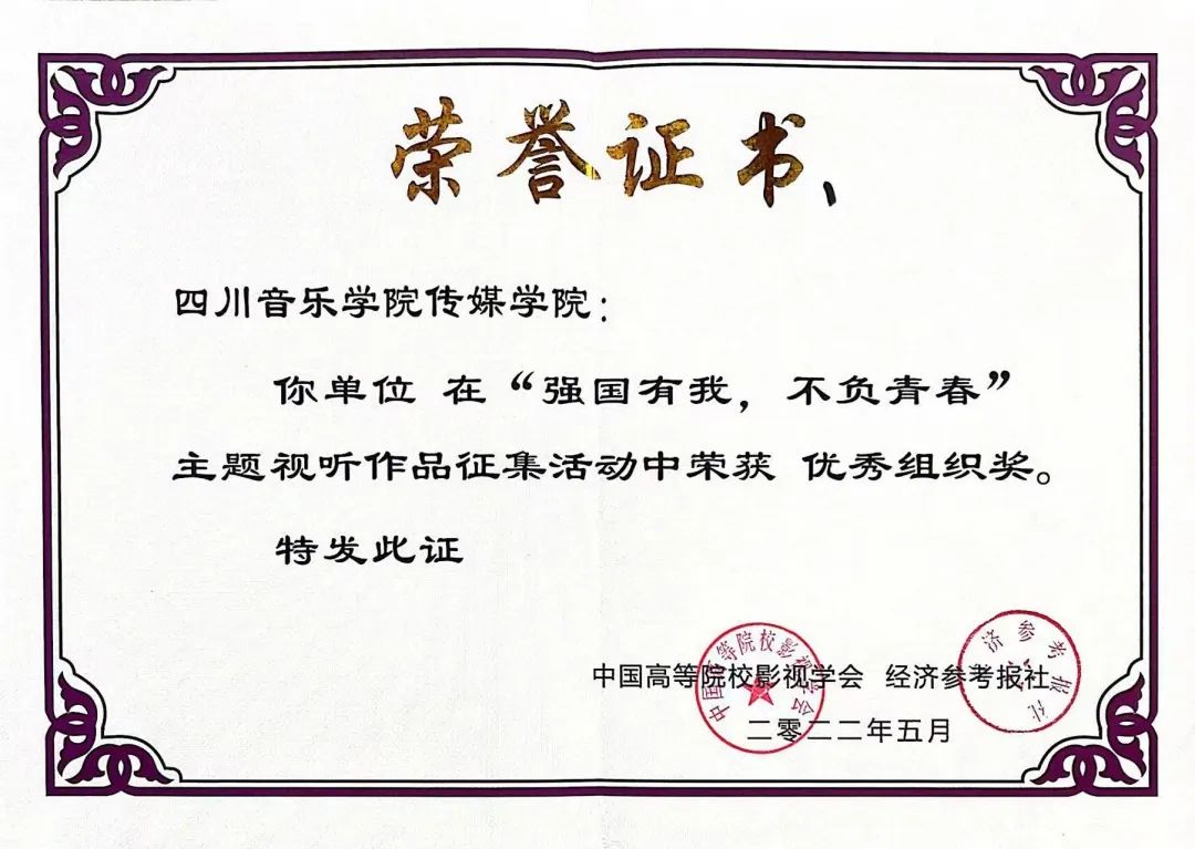 近期,由中国高等院校影视学会网络视听专业委员会与经济参考报社联合主办的“强国有我、不负青春”主题视听作品征集活动获奖名单揭晓,传媒学院2021级播音与主持艺术专业学生张紫钇创作的诵读作品《我喜欢出发》荣获本次征集活动网络传播奖,伟德bv国际体育传媒学院荣获“优秀组织奖”。