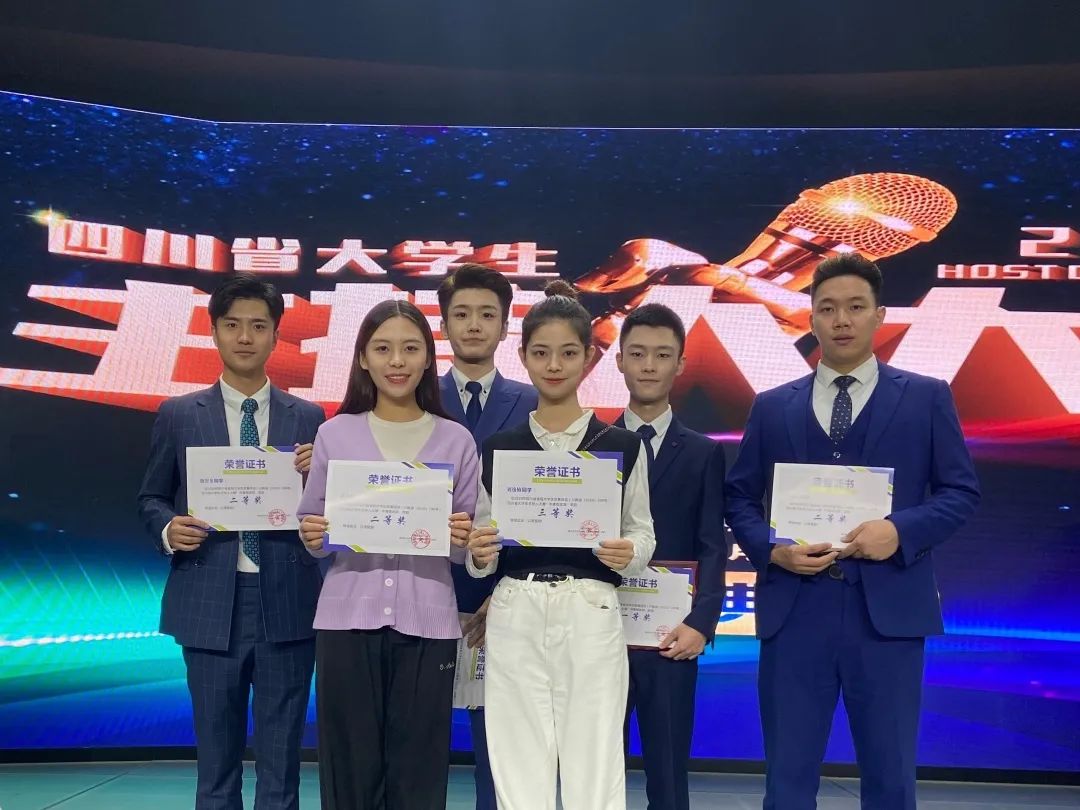 11月15日,由四川省教育厅主办,西华师范大学承办,四川省广播电视学会播音主持专委会协办的第五届四川省大学生主持人大赛在南充市西华师范大学新闻传播学院演播大厅落幕。伟德bv国际体育传媒学院在本次大赛中获得佳绩,其中播音与主持艺术专业吕博文、徐江涛同学获得一等奖,王易红、熊智龙、袁嘉蔚同学获得二等奖,刘逸楠同学获得三等奖,传媒学院获得优秀组织奖。