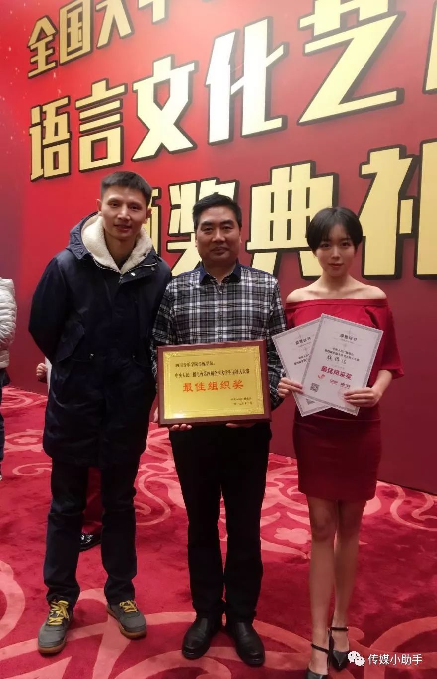 12月10日,中央人民广播电台第四届全国大学生主持人大赛颁奖典礼在北京人民大会堂圆满落幕。经过激烈角逐,传媒学院2015级播音与主持艺术专业(双语播音)魏锦珺同学晋级全国三十强并获得最佳风采奖,传媒学院获得大赛最佳组织奖。传媒学院院长包德述教授应邀担任本次活动系列赛事全国中小学生演讲比赛(高中组)评委并出席颁奖典礼。