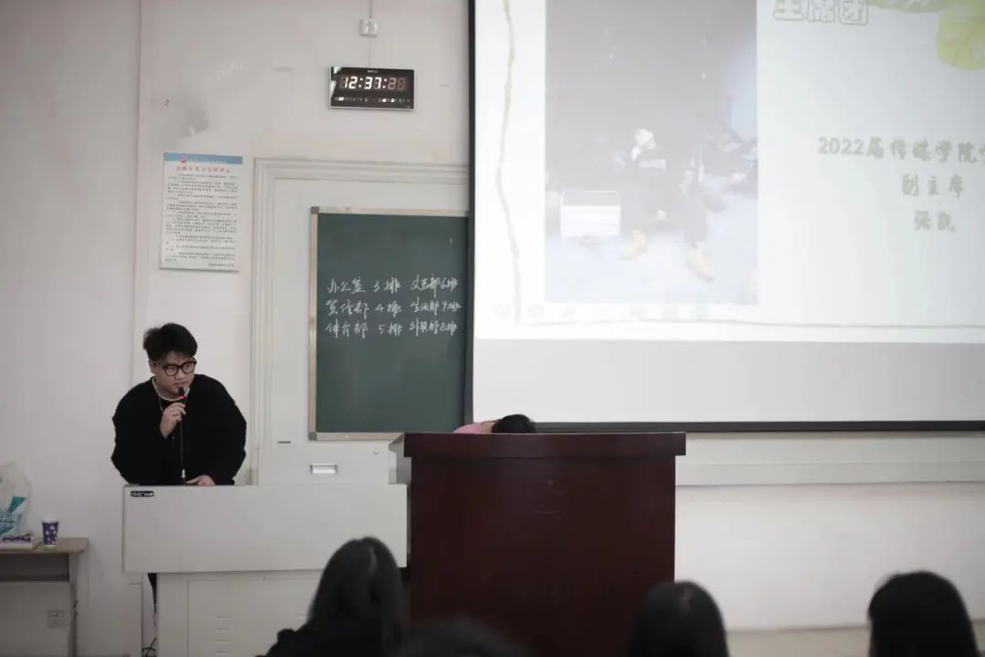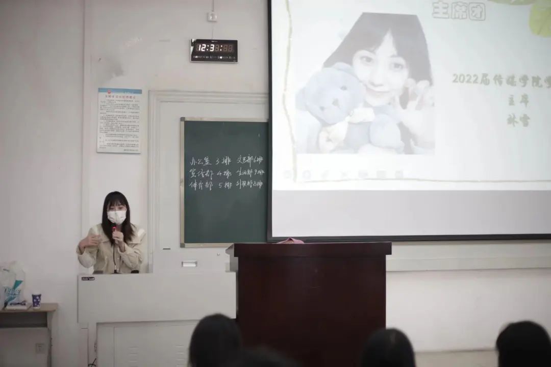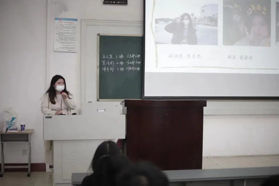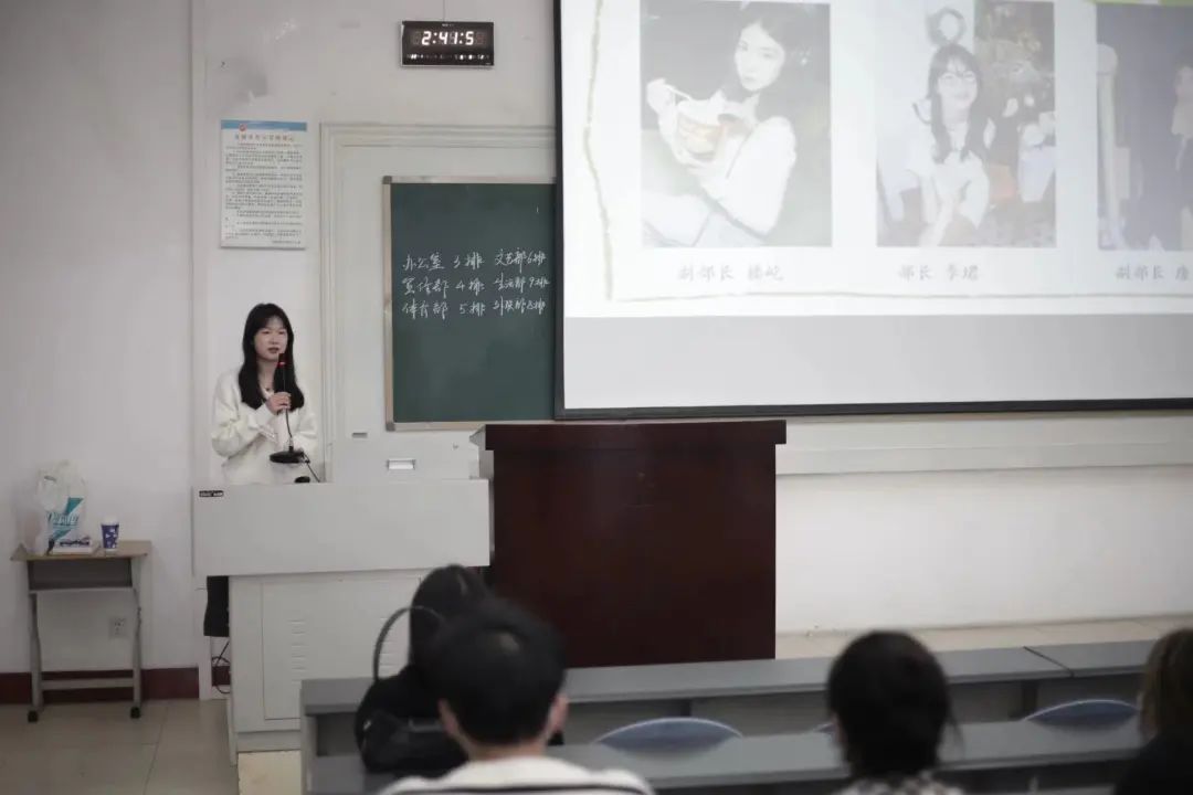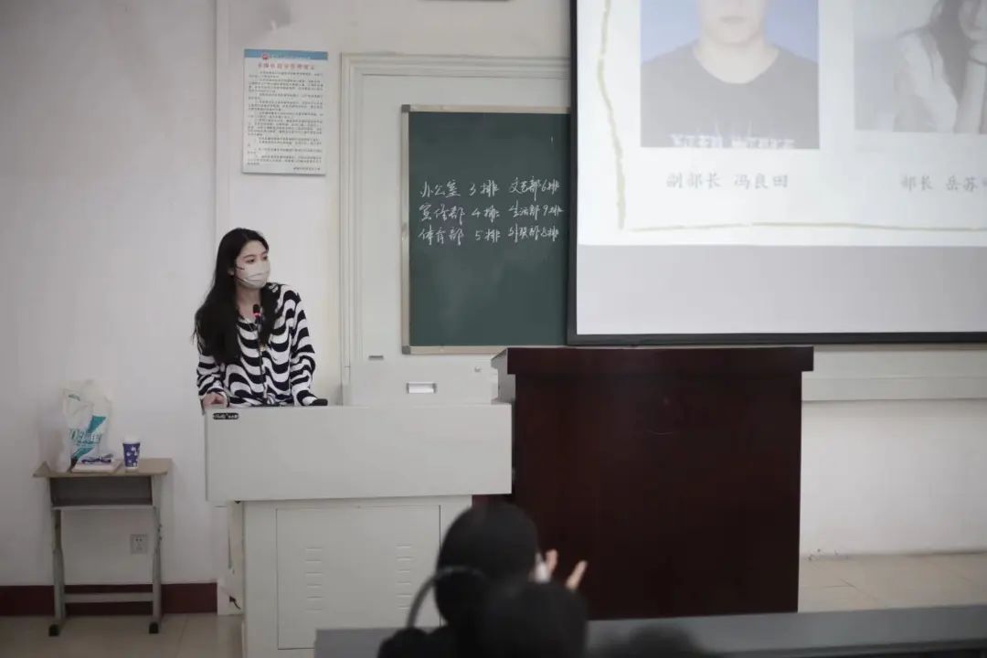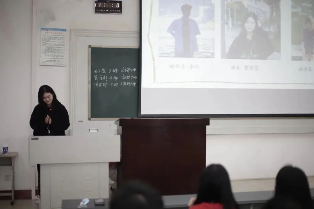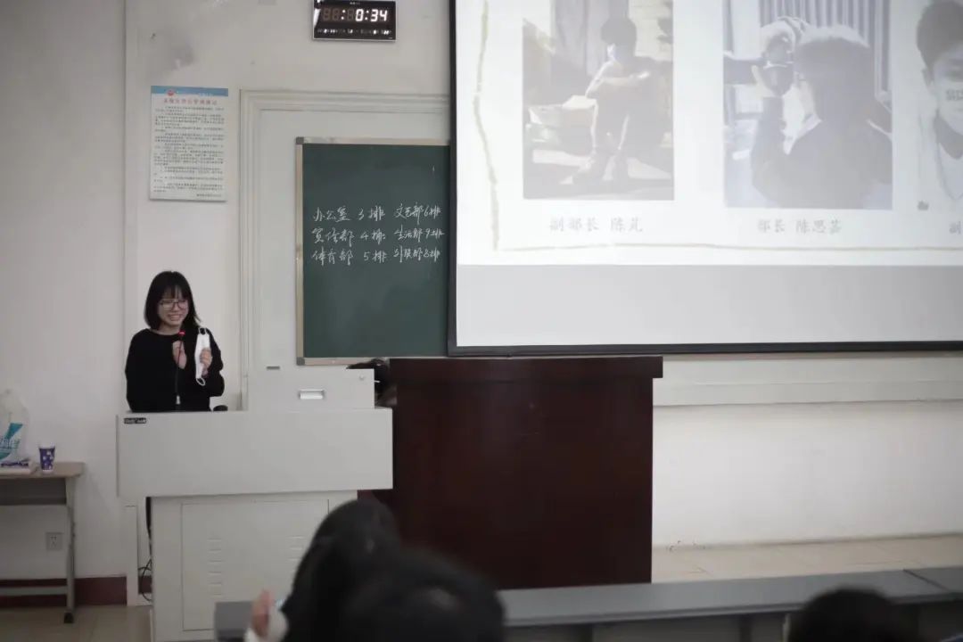 大会第三项,学生会各个部门负责人依次上台介绍了本部门的具体工作和职责,让新成员们能快速地了解学生会,便于更好地投入到接下来的工作中。