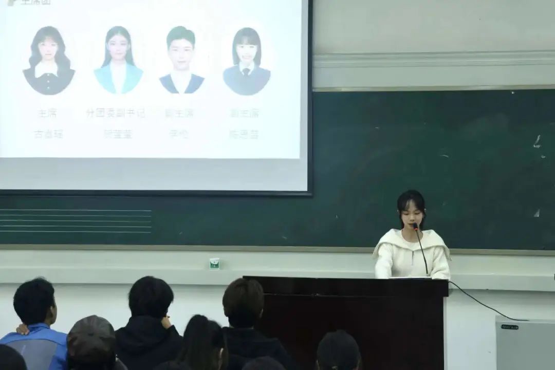 大会第二项,学生会主席团成员依次上台发言,对新成员表示热烈欢迎,也对各个部门的工作进行了展望。