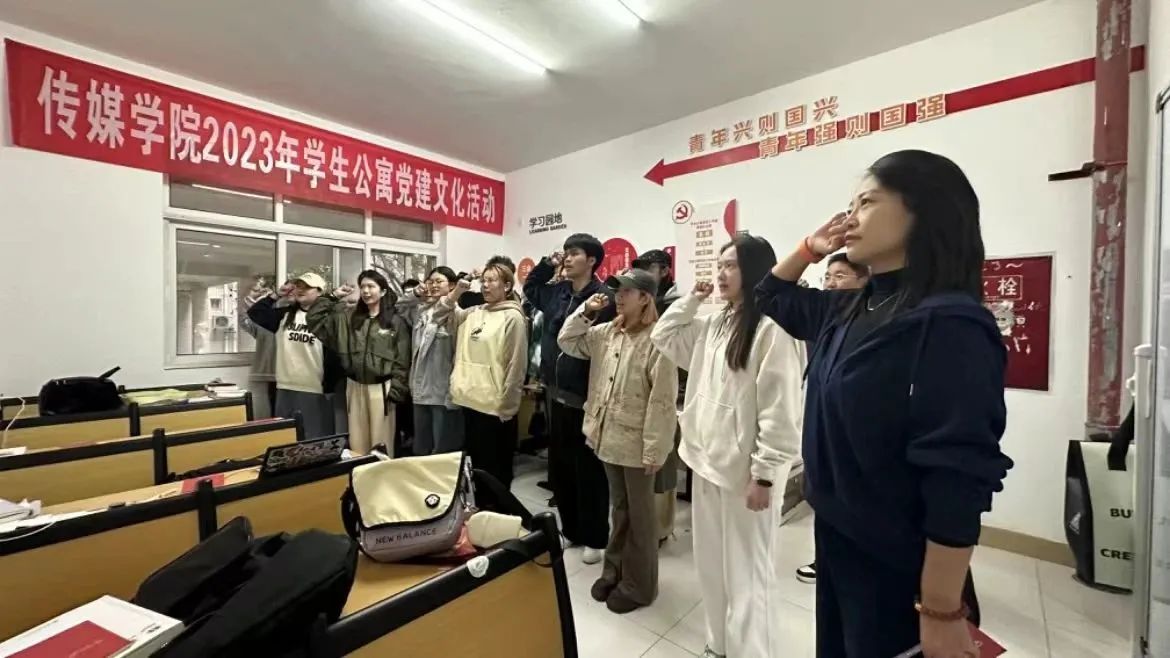 按照学校党委学生工作部 (处) 要求,为进一步推进伟德官网学生公寓党员工作站建设,有效发挥学生党员模范带头作用,引导学生铭记入党初心、坚定理想信念,传媒学院学生支部于 2023 年 10 月 19 日中午 12: 30在 1 栋学生公寓党员活动室,开展了我院第二次学生公寓党建文化系列活动。我院学生支部书记、2022 级辅导员董航,学生二支部书记、2023 级辅导员张堃锋,学生党员、部分入党积极分子共同参与了此次活动。