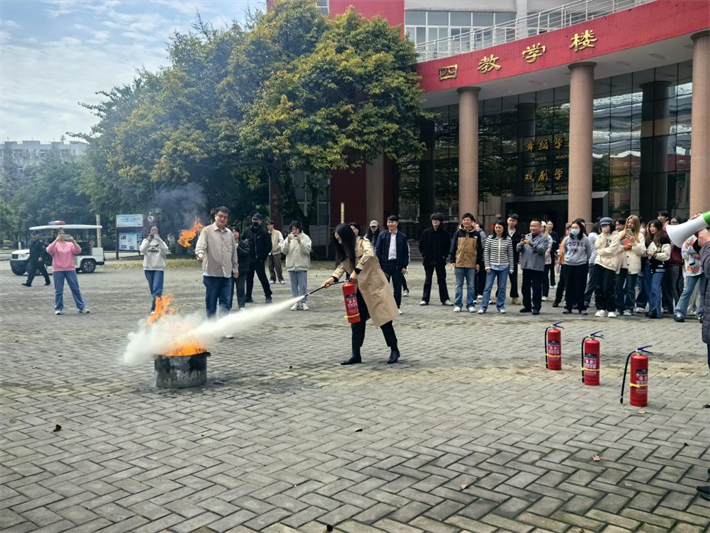 活动现场,学校保卫处老师对干粉灭火器的正确使用方法进行了讲解、示范、指导,强调使用灭火器要保持镇静,遇到火情千万不要慌乱失措,牢记“一晃,二拉,三压,四喷”要领,掌握正确的使用方法。同时还结合火灾事故案例,就用火用电、火场逃生、如何拨打119报警电话等一系列消防安全问题作了细致的讲解,并手把手地教学生们如何正确使用灭火器,现场学习氛围浓厚。此次消防疏散演练活动,有效增强了学院师生的消防安全意识,牢固树立“安全第一,责任重于泰山”的思想,同时进一步提高了师生们的自我保护能力和安全处置能力,为继续推进平安校园建设打下坚实基础。