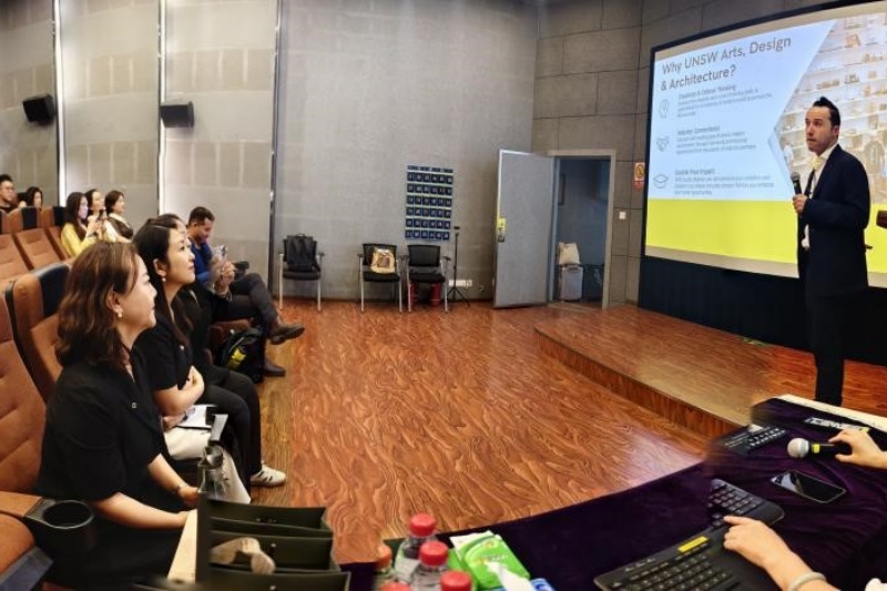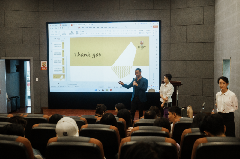 校方代表介绍环节中,新南威尔士大学校方代表大卫·卡米介绍了新南威尔士大学的学校概况、良好的就业前景以及优秀的毕业生情况。