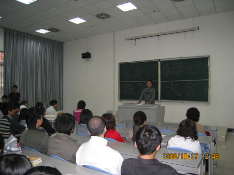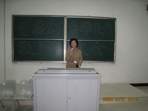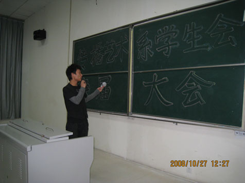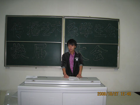 今日中午12:30分,传播艺术系学生会换届大会在四教101教室召开。150名学生代表参加了此次大会。系主任王江、党支部副书记向武军、辅导员出席了大会。 在向副书记致辞后,原学生会主席孙岳代表大家发表了题为《我们在这里成长》的告别演讲。他充满深情地说:“在这里,我们和传播艺术系一起经历、一起建设、一起成长、一起接受检验……心中有着太多太多的感受。不管将来我们在哪里,我们都不会忘记我们曾在这里生活过。祝愿我们系越办越好”。 孙俊善代表新一届学生会成员发表了热情洋溢的就职演讲。他说:“我们一定不会辜负系领导、老师、同学们的希望,我们会尽全力为同学们服务,像上一届学生会一样真正起到“桥梁”的作用”。 最后,系主任王江对换届工作顺利结束表示祝贺,对上一届学生会干部的工作给予了充分肯定,对他们的辛勤付出表示感谢,并祝福他们在以后的人生道路上取得更好的成绩。同时,对新一届学生会干部提出期望,希望他们在以后工作中,认真负责,为学生和系里的发展,做出应有的贡献。 换届大会在和谐的气氛中结束。