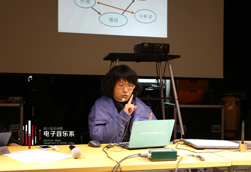 2013年12月10日下午,电子音乐系举办了一场关于“电子音乐创作及其记谱样式探讨”的专题学术讲座。讲座由系主任胡晓教授主持,邀请两位近年来在国内外电子音乐学界具有一定影响的年轻作曲家陆敏捷老师和毛竹老师担任主讲。 两位主讲人首先分别介绍了她们近期的电子音乐作品创作情况,通过播放作品和现场演示,从创作理念、技术手段以及音乐表现等方面展示了她们的创研成果,并对电子音乐创作中长期困扰着大家的“记谱样式”这一难题,提出自己的观点和解决问题的思路。讲座过程中,现场的师生通过提问、对话等方式,与两位主讲人进行了面对面的沟通与交流,对电子音乐创作与记谱范式进行了一次较为全面而生动地探讨。 此类学术讲座,是电子音乐系创新型学术团队建设中十分重要的一个组成部分。旨在邀请一线担纲教学、科研和创作的年轻专家与青年学子直接对话,相互碰撞,对电子音乐创作和研究中的若干现象与问题展开讨论,促使学科建设和专业建设的良性发展。