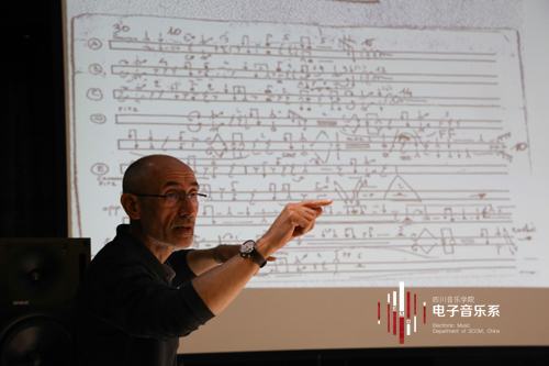 法国里昂格拉姆电子音乐中心[GRAME]于2015年6月17日至6月18日来到伟德bv国际体育电子音乐系举行学术访问。此次来访的有:法国国立音乐与声音艺术创研中心技术总监Christophe Lebreton、技术总监James Giroudon和法国作曲家、跨媒介音乐演奏家Xavier Garcia以及国际打击乐独奏表演艺术家Jeam Geoffroy,同时Xavier Garcia和Jeam Geoffroy也是此次学术系列讲座的主讲人。Jeam Geoffroy30年来,他在世界各地的大型音乐节上诠释属于我们这个时代的听觉感受。足迹遍布亚洲、北美、南美、俄罗斯和中欧、北非、土耳其以及整个欧洲大陆。1995-2000年期间工作于巴黎管弦乐团,之后在法国国立音乐学院等大学和研究机构中任职任教,出版30多张CD唱片和若干张DVD。Jeam Geoffroy同时也是法国 IRCAM(法国蓬皮杜中心音乐音响研究所)的编委会成员。