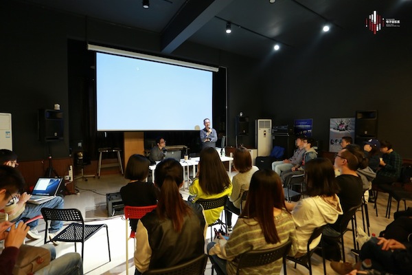 此次来访,Miyama教授举办了三场大师班,为电子音乐系学生指导作品。2016年9月20日下午2点30分,由电子音乐系系主任胡晓教授担任主持,Miyama博士在电子音乐实验室以“声音与感官”以及“德国艺术媒体中心全息声响系统介绍”为主题向全系师生分享了其多年在“视觉、肢体与声音关系”里的研究成果、新型电子乐器的开发、并且生动详细的介绍了全息声响系统Zirkonium的开发背景,运行原理以及实际运用中的多种可能性。近三个小时精彩的讲座,Miyama博士以图文并茂结合作品展示的方式,引起同学们在“未来新媒体音乐发展”和“全息声响系统”这两大课题上的浓厚兴趣。讲座结束后,Miyama博士耐心的回答了师生们对此提出的系列问题。