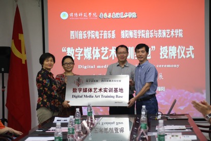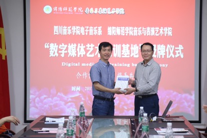 首先来到师范学院参加“数字媒体艺术实训基地”授牌仪式。授牌仪式由绵阳师范学院音乐与表演艺术学院音乐科技教研室主任杨永国副教授主持。