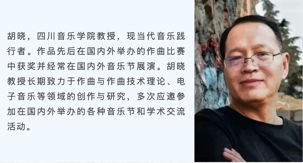 作品灵感源于⾦沙遗址出⼟的⽟⼗节长琮。作者感怀,⽟,⽯之美,纵然在泥⼟⾥沉降,透过⽟琮,我们仍然可以凝望良渚⽂化在巴蜀⼟地留下的印记,感知⽂物创造者的“⼼念”。作者以⼆胡为主要乐器,将其独特⾳响和电⼦化的声⾳相结合,呈现出新的⾳响语⾔,叙说⽟琮辗转流经的历史年华。