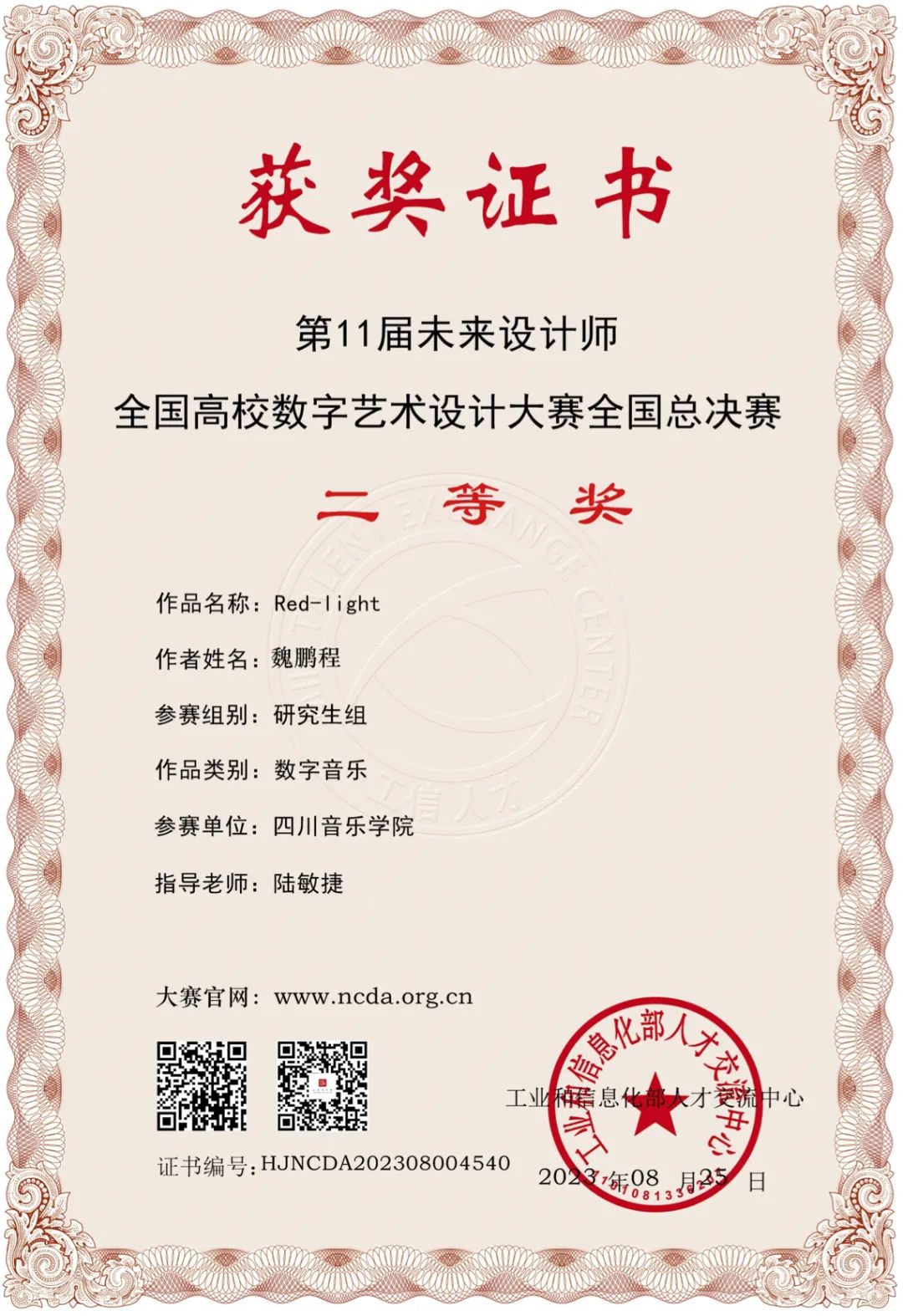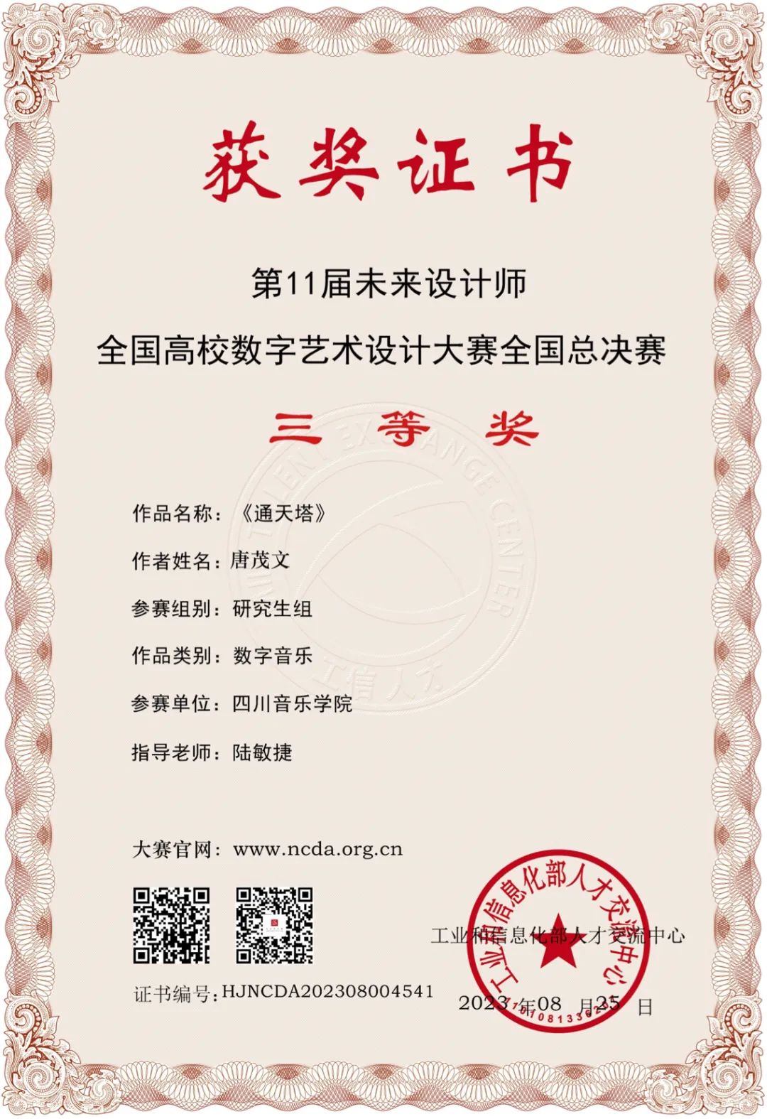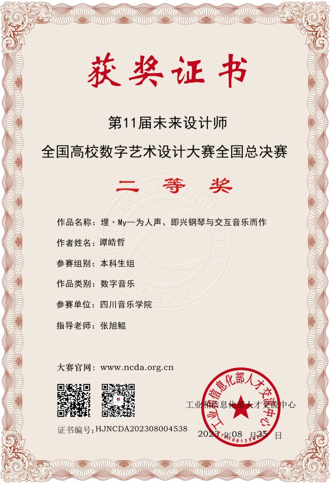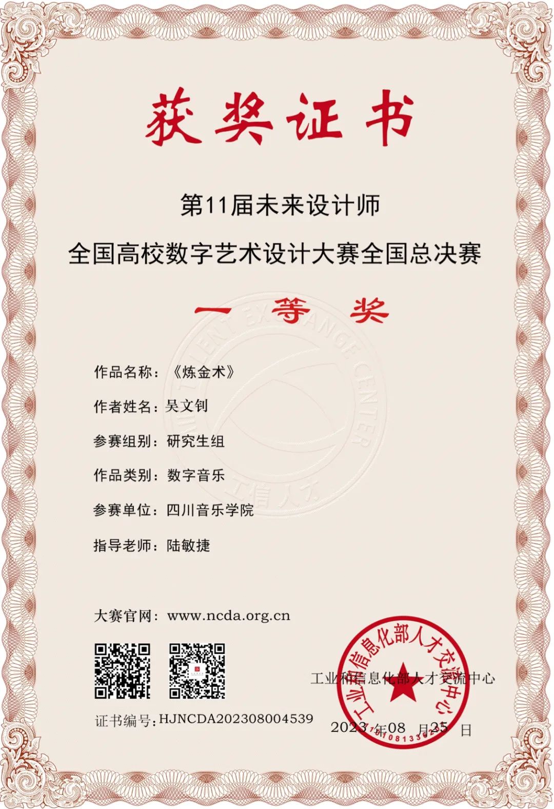 伟德bv国际体育电子音乐系学生由青年教师蔡奕滨带队,全程参与了“数字音乐”大类的四川省赛、全国总决赛。最终,我系研究生吴文钊、魏鹏程、唐茂文、本科生谭皓哲在全国总决赛(数字音乐类)中获得1个一等奖、2个二等奖、1个三等奖,具体如下: