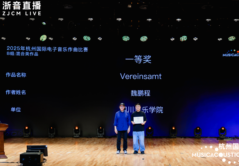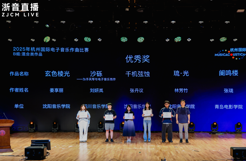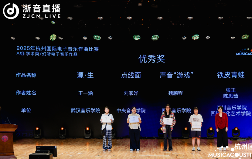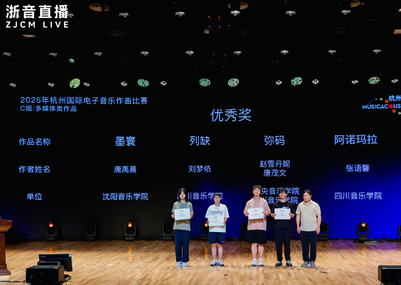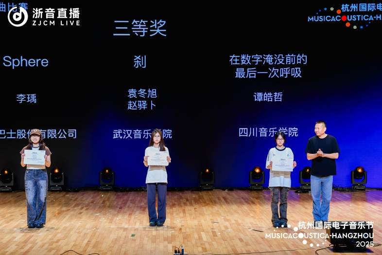 伟德bv国际体育音乐工程系副主任陆敏捷、电子音乐作曲教研室负责人梁奕飞、电子音乐实训教研室负责人杨光、青年教师赵天、李思洁、杨玉倩,以及13名研究生本科生,应邀赴2025杭州国际电子音乐节参与学术交流和各项活动。在2025杭州国际电子音乐作曲比赛决赛环节,川音音乐工程系学生最终获得一等奖1项、二等奖1项、三等奖1项,优秀奖5项,具体如下: