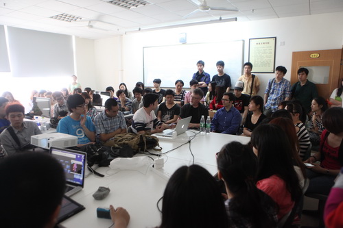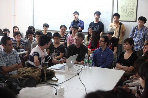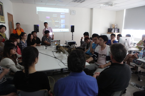 美国北德克萨斯大学音乐学院Joseph Klein、David Stout和Andrew May教授应邀访问川音电子音乐系,举办了系列大师班、学术讲座以及跨媒介电子音乐会。5月23日下午,跨媒介电子音乐大师班、电子音乐作曲大师班在我院举行,电子音乐系的同学参加观摩了两场大师班的课程。 大师班由Andrew May教授和Dabide Stout教授担任,本系多位同学展示了自己的作品并接受了两位教授指导。David Stout教授首先对曾诚、范弘硕同学提交的互动音乐作品给予了肯定,对同学们作品中视觉设计和声音部分的一些改变,以及动作互动结合方法等提出了建议。Andrew May教授对几位同学提交的电子音乐方向的作品给予了肯定,并对几位同学作品中的声音材料的运用、变形手段以及整个曲目结构和主题、技术方面提出了自己的建议。 最后两位教授和同学们进行了交流,并各自谈到了关于学习电子音乐的方式和方法,如何启发自身的灵感等方面,给予了同学们很多的建议和意见。两位教授也对同学们的各种想法表示肯定和欣赏。他们提出的各种新颖想法和思维也极大地启发了同学们,对川音将来在电子音乐、新媒体艺术的学习和作品创作都起到了深远影响。