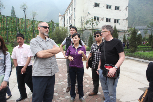 为期4天的“跨媒介电子音乐学术研讨会”终于圆满落下帷幕。我系领导及相关老师陪同应邀前来讲学的美国北德克萨斯大学音乐学院Joseph Klein、Andrew May、 David Stout教授到汶川地震灾区参观。三位美国专家对灾区翻天覆地的变化和惊人的重建速度赞叹不已。当来到位于“5.12”大地震震中的汶川县映秀镇漩口中学遗址参观时,看到垮塌的教学楼和学生宿舍遗址,听到一个个惊人的数字和感人的官兵救人故事,Andrew May教授忍不住泪光闪烁。随后一行还参观了都江堰水利工程,三位美籍教授为这项至今仍然还在灌溉成都平原发挥作用的伟大水利工程所震撼,为中华民族祖先留下的灿烂文明感叹不已。