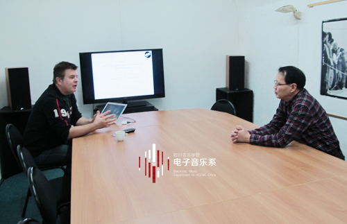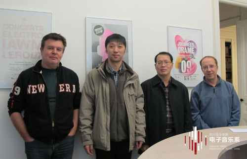应法国格拉姆国立音乐创演中心(www.grame.fr)主任詹姆斯.吉让顿(James Giroudon,)邀请,2012年11月5日至12日,电子音乐系系主任胡晓教授和白小墨老师赴法国格拉姆国立音乐创演中心交流访问, 并与对方洽谈、确立了2013至2014年以“电子音乐、声音装置”为主题的学术互访、演出合作。 格拉姆中心在欧洲乃至世界都是电子音乐与声音艺术研究的重要机构,拥有世界顶尖的专家团队、一流的声音艺术创作演出制作经验和精良的设备。 为期8天的交流活动中,胡晓主任向欧洲同行介绍了我系在教学、创作、科研等方面的特色;格拉姆的专家Christophe Lebreton、Yann Orlarey、Dominique Fober和Max Bruckert分别向我系教师介绍了格拉姆中心近期的研究项目和电子音乐设计软件Faust、实时乐谱软件INScore以及电子音乐在剧场中的舞台和声音设计,中心主任詹姆斯.吉让顿特意安排我系教师观摩由格拉姆创作的即将上演的舞台剧“THE NEED FOR COSMOS”的联排。 在访问期间,我系与格拉姆中心进行了深入交流,并互相加深了了解。同时,就 2013年中国中法联袂电子音乐与声音装置艺术展演、2014年学生电子音乐夏令营等学术、演出等方面的进一步合作项目初步达成共识。