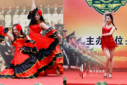 在3月18日的全院军训汇报大会上,电子音乐系2012级全体同学向在场的所有领导、教官和老师们展示了他们的飒爽英姿和崭新精神风貌。其后,同学们还进行了反恐军事训练、女子匕手操、徒手操、女子擒敌术、男子格斗术、短棍术等汇报表演,展示出电子音乐系学子的顽强意志和昂扬向上的精神风貌,嘹亮雄壮的口号声,整齐划一的脚步声响彻云霄。