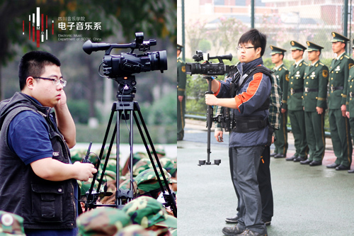 军训期间,系主任胡晓教授还带队电子音乐系国家级大学生创新创业实训计划项目组的老师白小墨、韩彦敏和学生范弘硕、薛文白、赵天等先后3次对全院2012级新生军训的情况进行了拍摄和跟踪采访,并制作了学院2012级军训荟萃光盘。同学们感到系领导、老师及学长们像家人一样的贴心和温暖。有的同学们感叹到:“真的很幸运能够成为电子音乐系的学生。”这个集体不仅带给了同学们知识,同时也带给了每一位同学“家”的感觉。同学们在紧张的军训之余还协助谭劲老师完成军训的宣传工作,他们制作黑板报,及时、准确的告诉全院师生每天不同的新闻轶事,为大家减缓训练疲劳。他们还将军训花絮在武警学院大屏幕上播放,让同学们直观的看到自己穿上军装时训练的身影,激励同学们去更好地完成训练任务。