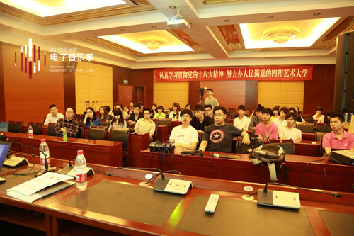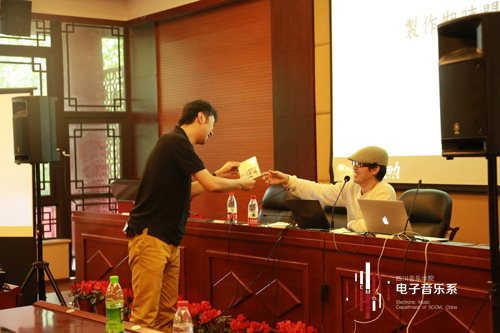 此次讲座作为川音学科高地建设-2013系列学术讲座的一部分。高立硕先生曾参与黎明、蔡黄汝、任贤齐、许富凯、鍾漢良、金城武等人的唱片制作工作和集团的铃声,游戏,广告音乐的作曲,编曲等工作。能亲自听到来自商业音乐制作第一线制作人的讲座,对电子音乐系正在学习音乐制作的同学们来说是一次难得的学习机会。在讲座中,高先生高水平的音乐制作给师生们留下了非常深刻的印象。成都一些涉外音乐制作公司听说他要来川音讲学还专门派出专业人员前来学习;川音流行音乐学院音乐制作专业的同学们也冒着大雨从新都前来听讲。高先生的讲学十分风趣,注重与师生们的互动,他特地从台湾带来了一些有著名歌手签名的CD光碟,作为奖品分发给能正确回答他的提问的同学和老师;现场邀请一些同学上台与他一起表演手机铃声的合奏和重奏;较为详细地介绍了台湾唱片公司是怎样从立案,制作到发卖唱片的全部过程。在介绍自己的作品和歌手的演唱的同时,高先生也就台湾的音乐制作环境;音乐制作人需具备的知识;自己的工作内容等做了介绍。