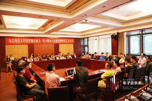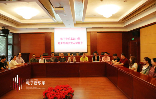 邓舒副书记首先对2013级新生及其家长的到来表示热烈的欢迎,并通过一段VCR简短地介绍了电子音乐系的概况。接下来,每一位专业教师都做了简短的发言,从学业规划、培养计划、课程设置,到学习的心得、未来的展望,对同学们提出了希望和要求,希望同学们在这样一个科技与艺术相结合的专业,在学好传统音乐的同时,运用高科技技术手段,打开创造力和想象力的空间,在四年的学习中,学有所成。