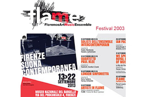 2013年9月13-22日,Flame-2013现代音乐节在意大利佛罗伦萨举行。胡晓教授的室内乐作品《秋叶-单簧管与女高音》在该音乐节全球当代音乐作品征集中,作为唯一一部中国作曲家的作品入选音乐节,9月19日晚由意大利Flame室内乐团女高音Giulia Peri和单簧管Emilio Checchini在佛罗伦萨BARGELLO 国家博物馆成功展演,受到所有艺术家和听众的高度评价。 Flame现代音乐节,是意大利佛罗伦萨每年一度颇有影响的国际音乐活动之一。在本年度音乐节期间,来自法国、英国和意大利等世界顶级室内乐团的音乐家,应邀举办了多场十分精彩的音乐会,是一次十分重要的成果展示和学术交流活动。胡晓教授应音乐节组委会邀请,出席了本次音乐节所有的学术活动。