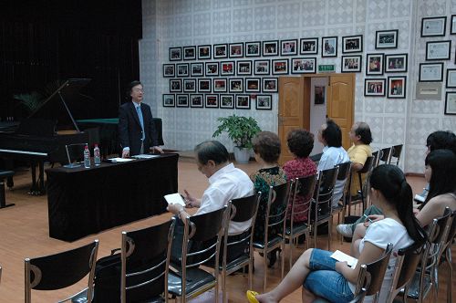 在得知四川发生特大地震的消息以后,远在澳大利亚墨尔本的储望华先生心急如焚,他时刻关注着国内赈灾救援的各种消息,热切地盼望能有机会为祖国的“抗震救灾”贡献自己的一份力量。储先生毅然做出决定:调整日程安排,自己承担所有费用前来伟德bv国际体育进行义务讲学活动,以这种特殊的形式表达自己的一片赤诚深情和拳拳爱心。通过与伟德bv国际体育钢琴系的积极联络,储先生于6月10日成功举办了讲学活动。