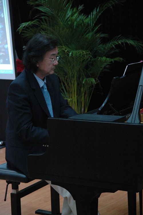 在讲学过程中,储先生展示了很多图片和音像资料,其中包括一些珍贵的历史照片和他自己创作的油画、书法、摄影等作品。在对《黄河钢琴协奏曲》和他的其它钢琴作品做介绍时,储先生还亲自做了精彩的示范演奏。短短两个多小时的讲学活动,大厅内数次响起听众的掌声,整个活动始终在一种热烈的气氛当中进行着。