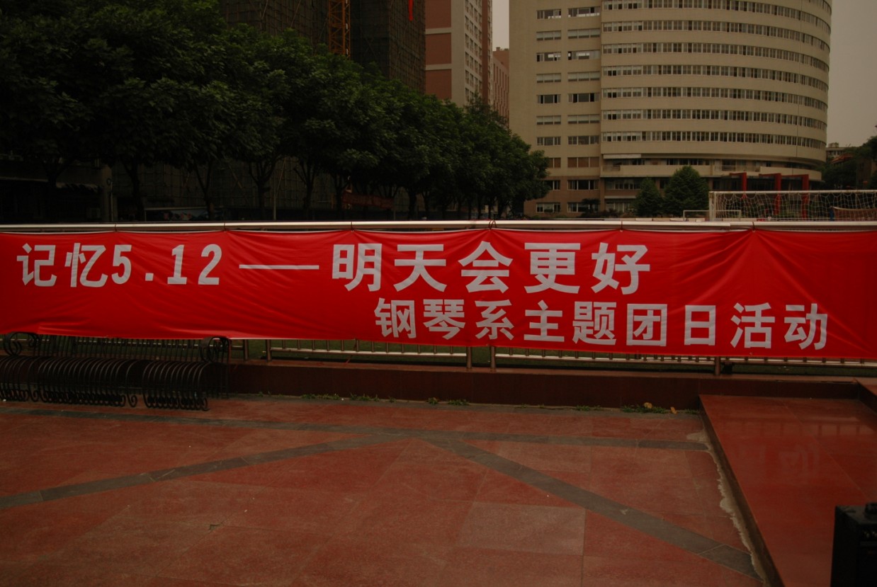 2009年5月12日中午2:10分,学院篮球场上响起了《生死不离》这首歌,钢琴系《记忆5.12—明天会更好》主题团日活动在此举行。本次活动的议程以默哀和募捐组成。钢琴系师生以此活动悼念逝者,慰藉生者,共同企盼早日恢复重建,把我们的家园建设得更加美好。活动结束的第二天,钢琴系把所筹到的善款共计:贰仟零四十二元八角整(2042.8元)送到了位于玉双路的四川省红十字会,得到了红十字会的高度评价,社会的高度赞扬。